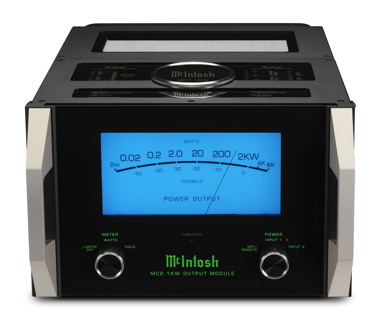 ●究極の1チャンネルあたり3シャーシ構成による、2000W出力。MC2.1KW は、片側につき1つの出力モジュールと2つのパワーモジュールの3つの個別のモジュールで構成されており、それぞれに 1,000 ワットのアンプが含まれています。