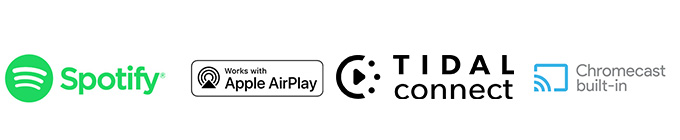 ●Apple®AirPlay®、Bluetooth®、Google Cast™(旧Chrome Cast)、Spotify®Connect、TIDAL®Connect(TIDAL HiFi Lossless Qualityを含む)など、多くの主要なストリーミング技術とプラットフォームに対応しています。