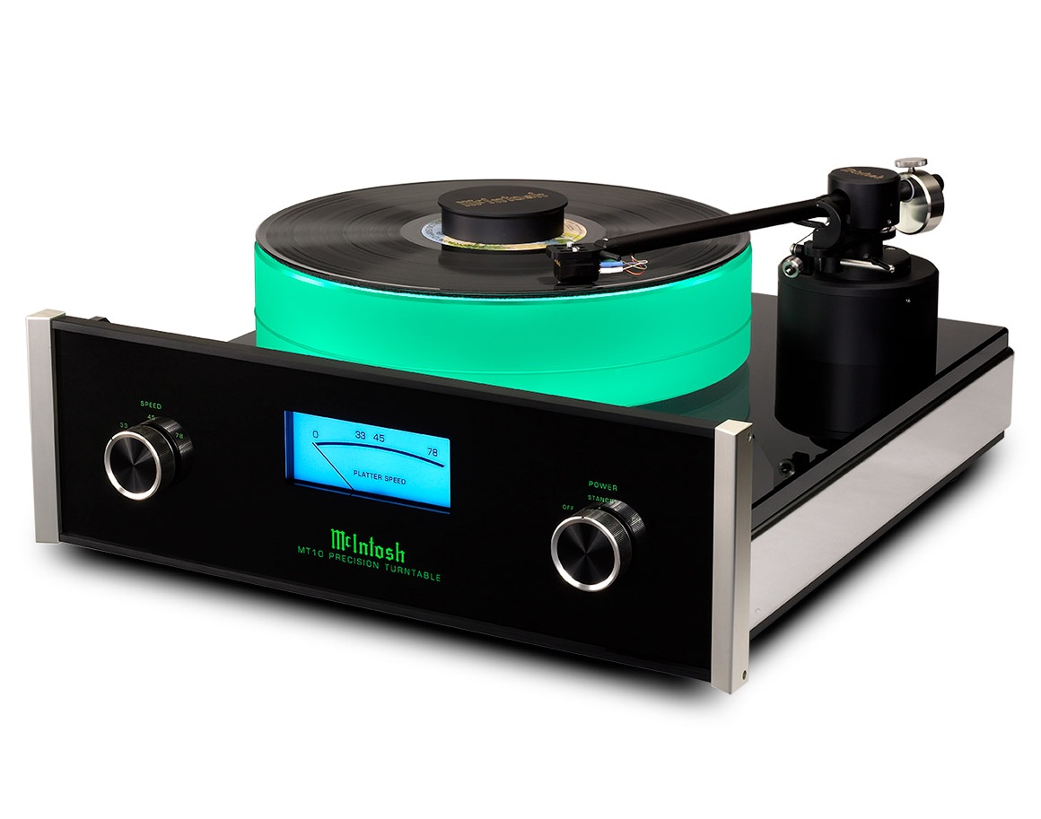 精緻な音を再現するため、素材から設計まで細部にわたって検討。グリーンイルミネーションに照らされ幻想的な表情を見せる重量級ターンテーブルMT10の登場です。レコードの溝を滑らかにトレースするトーンアームの先には、黒檀のボディーをもつMCカートリッジを装着しています。至高の音質を求めれば、システムの表情は美しくなる。マッキントッシュがお届けするレコード再生の心地よい響きで空間を満たす。待ちわびた時が今、始まります。