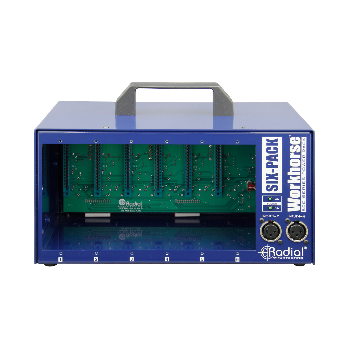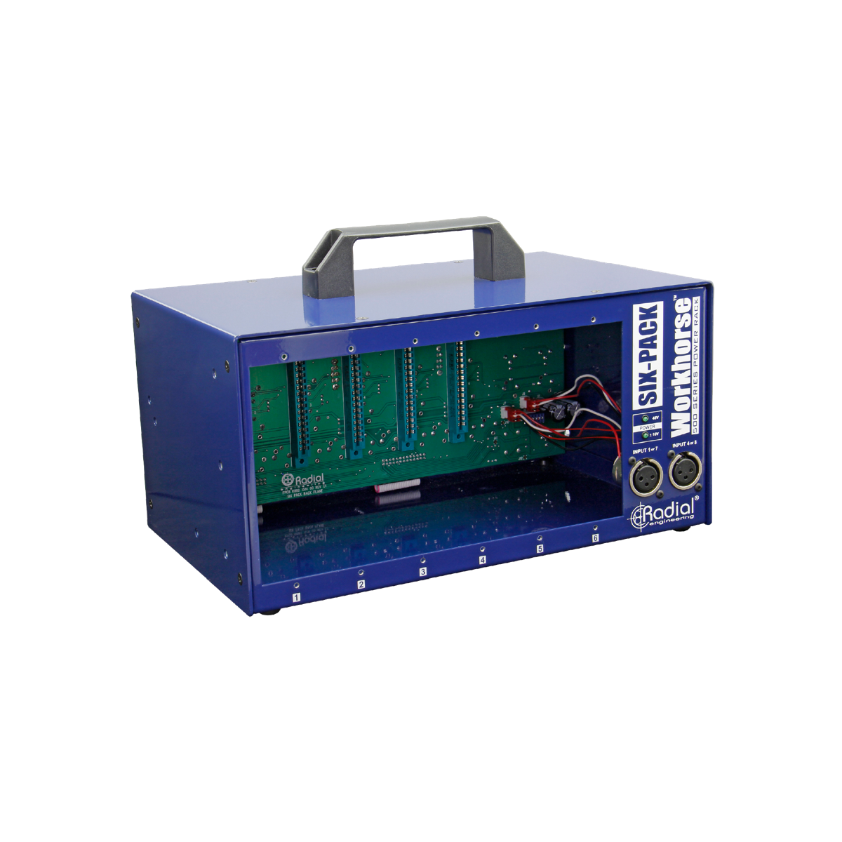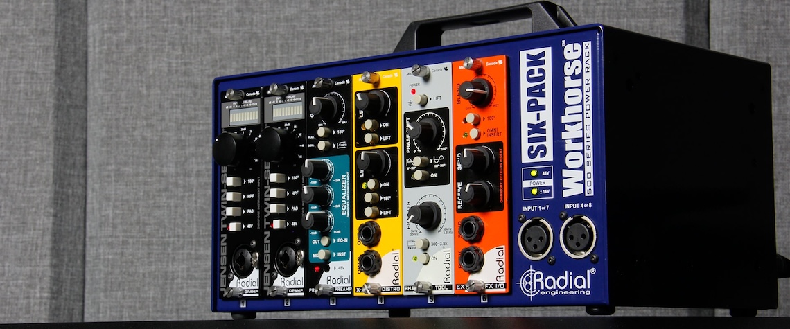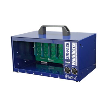 6モジュールのラックはAPIが先駆けた良いフォーマットです。RadialはWorkhorseにD-Subコネクターとより大容量電流を加え、APIの新Lunchboxにもこれが採用されました。さらにリンクスイッチやステレオサミング、フロントパネルの便利なジャックも追加しています。