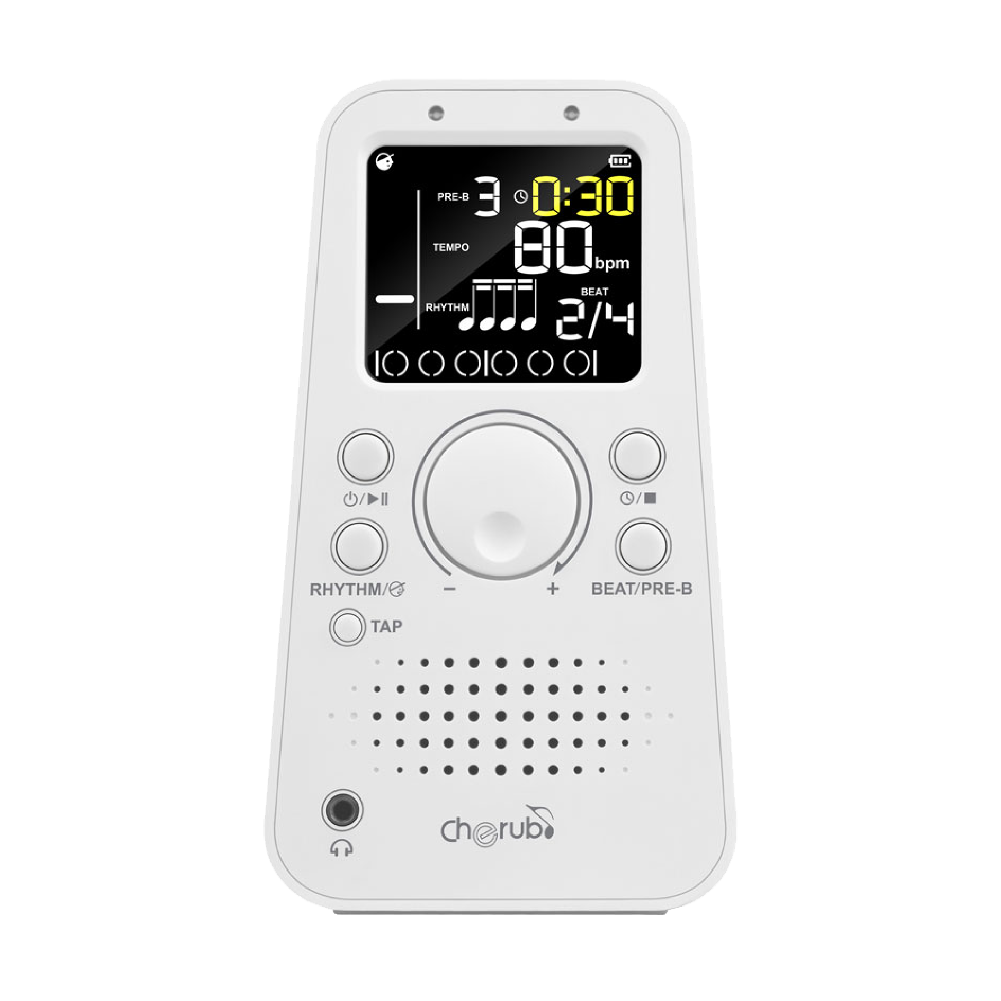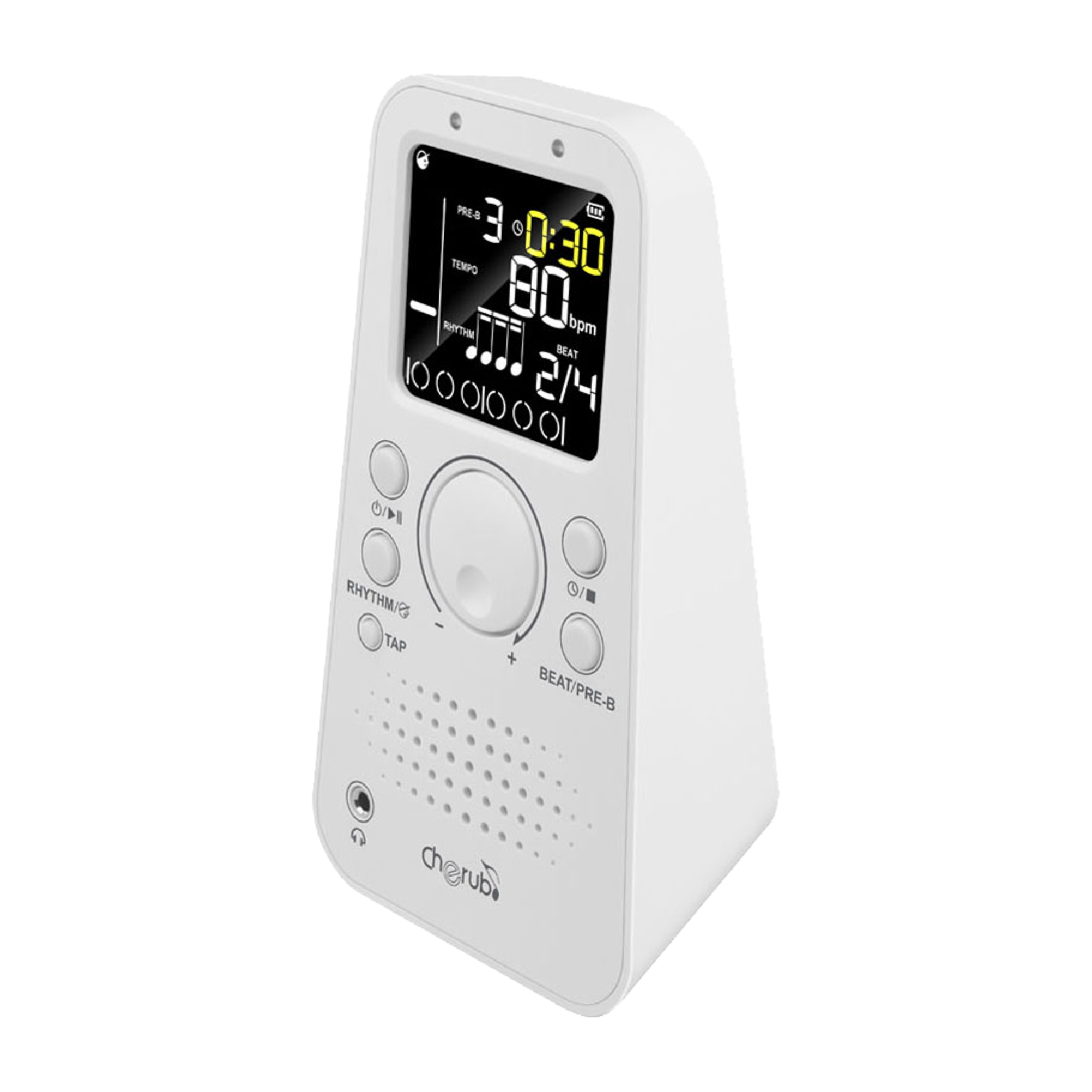 タップテンポやタイマー機能、大型ディスプレイなど様々な機能を搭載した充電式デジタルメトロノーム
