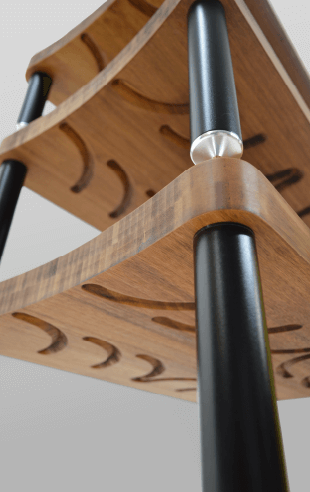 特殊な工程を経て集積された竹材と構造により従来の硬質木材を凌駕する音響特性のオーディオラックを制作しています。
