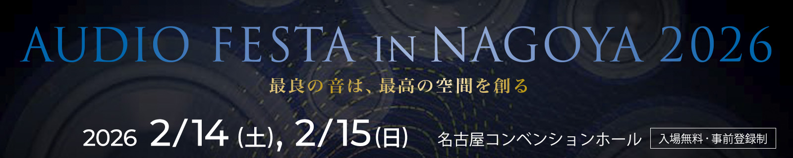 イベント情報 What's New 2026.2.10 EVENT オーディオフェスタ・イン・ナゴヤ 2026 ■開催日時: 2026年2月14日(土)10:00~19:00 2026年2月15日(日)10:00~17:00 ■開催場所:名古屋コンベンションホール 〒453-6190 愛知県名古屋市中村区平池町4-60-12 ●詳しいイベント情報は<こちら>から 最新情報一覧に戻る