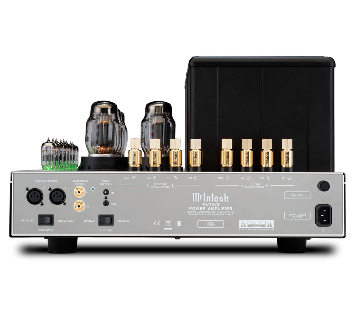 ●『MC275』のペアをモノラルで動作させて『MC1502』と同等のチャンネルあたり150ワットの出力を達成することができますが、『MC1502』は、『MC275』ペアリングの105dBに対して112dBの優れたS/N比を誇り、すでに低ノイズフロアを実現している『MC275』よりもさらに静かなパフォーマンスを実現しています。