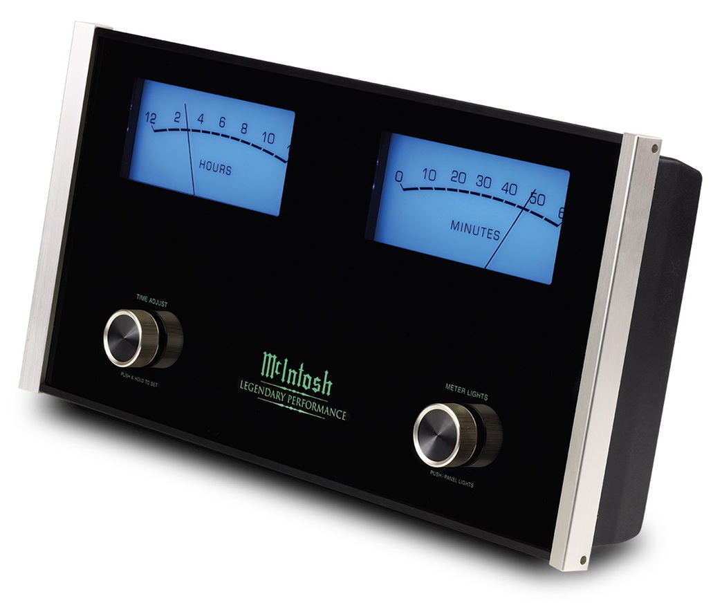 MCLK12は、個性的でインパクトのあるマッキントッシュ・デザインをモチーフにしたアナログ・クロックです。マッキントッシュのシンボルともいえる精悍なブラックガラスパネルに映えるブルーアイズメーターは、左が時表示、右が分表示されます。また、パワーコントロール接続することで、マッキントッシュ・コンポーネントとのメーター照明オン/オフを連動させることができ、デザイン面でもジャストフィットします。リチウム電池によるバックアップ機能も備えています。