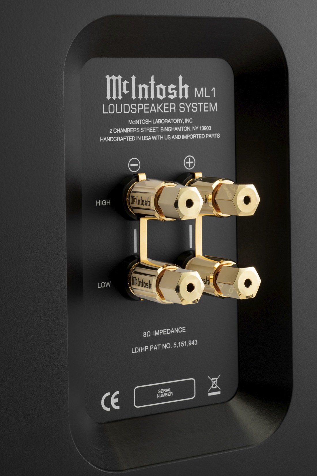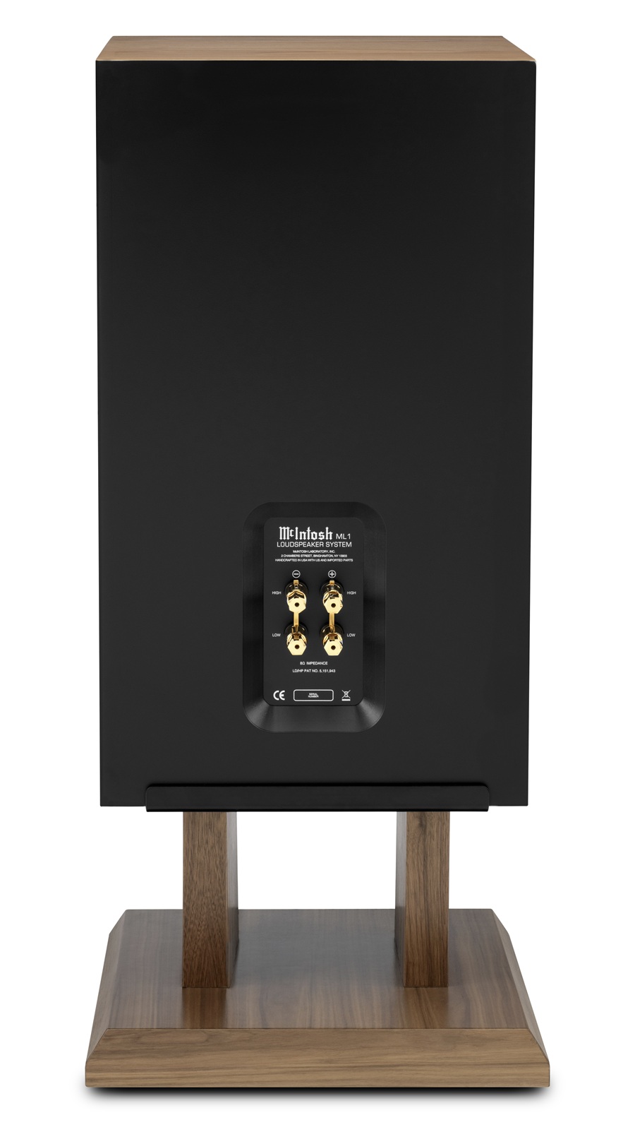 ML1 MkⅡは米国製で、McIntosh 社のパワーアンプやインテグレーテッド・アンプのバッジと同様のアルミダイキャスト製のヴィンテージ・ネームバッジをベースにあしらったスタンドが付属しています。スタンドは、ML1 MkⅡを理想的なイメージングとリスニングの楽しみのために最適な高さへ持ち上げ、配置できるように設計されています。硬い床用の足と、カーペット用のスパイクが付属しています。
