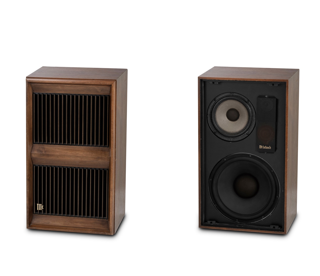 ML1ブックシェルフ・スピーカーは、McIntoshが初めて製造したスピーカーでした。1970年に発表され、ミッドセンチュリー・モダンデザインのスタイルを纏い、大音量出力と優れた低音再生能力を備え、特に外部イコライザーと組み合わせた場合に驚異的なサウンドクオリティを実現しました。