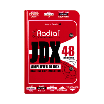 JDX-48は、ギターアンプのヘッドとスピーカーキャビネットの間に接続して、PAシステムへバランス信号を送る際に、スピーカーの前にダイナミックマイクを設置したような自然で安定した音色をキャプチャするダイレクトボックスです。