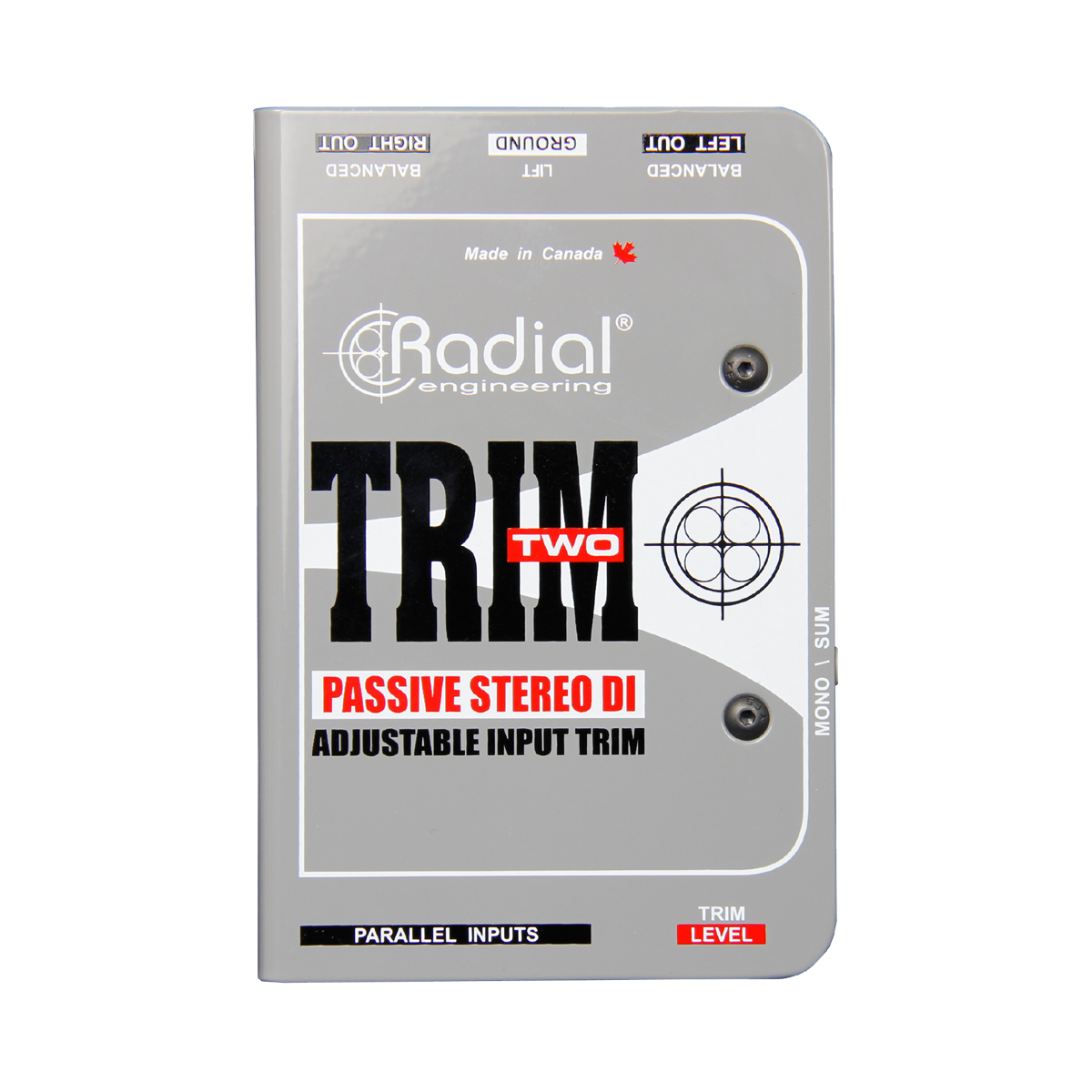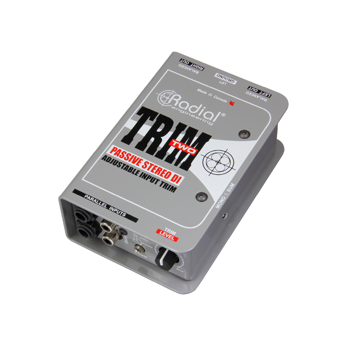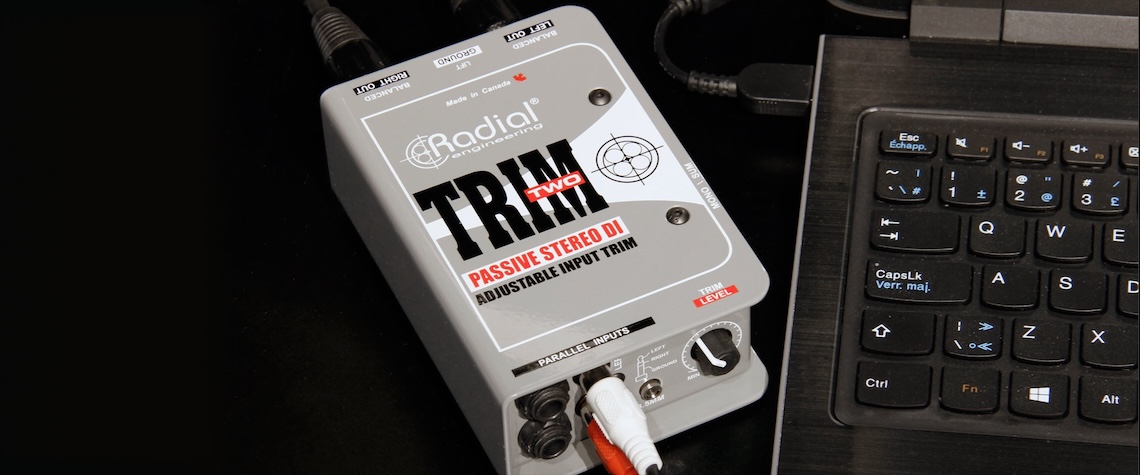 Trim-Twoは、ノートパソコンやその他コンシューマーレベルの再生機器向けに設計されたパッシブステレオダイレクトボックスです。グラウンドループによるハムやバズを除去し、ステージ上での素早い調整を可能にするレベルコントロールを装備しています。