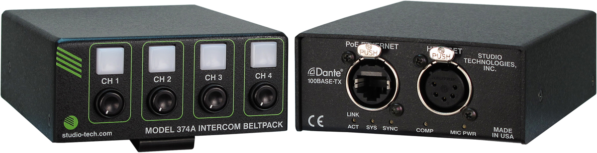Dante対応ベルトパック(4チャンネル LISTEN/TALKボタン搭載 5ピンXLRメス)
