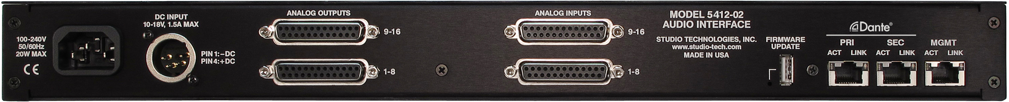 - Model 5412-02: 16 line-level analog inputs and 16 line-level analog outputs
