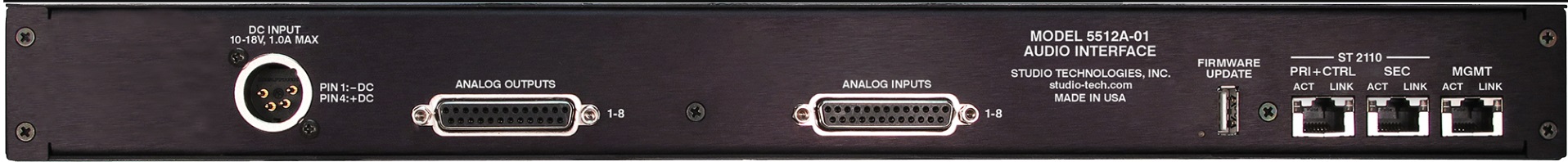 - Model 5512A-01-DC: 8 line-level analog inputs and 8 line-level analog outputs
