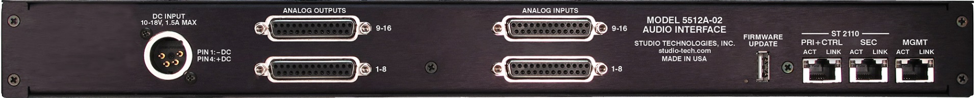- Model 5512A-02-DC: 16 line-level analog inputs and 16 line-level analog outputs