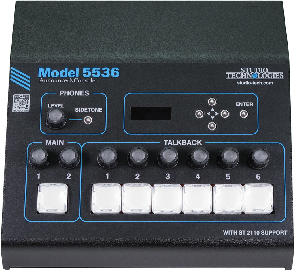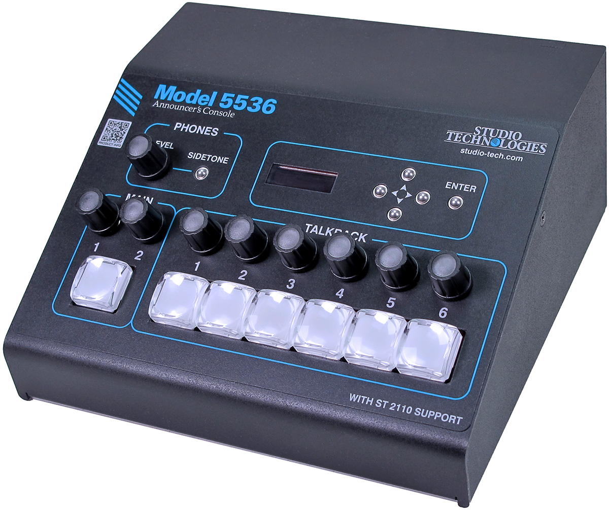Model 5536 アナウンサーズ・コンソールは、高性能なアナログおよびデジタルオーディオ機能に加え、豊富なユーザー機能と柔軟に構成可能なリソースを兼ね備えた製品です。このユニットは、オーディオ・オーバー・イーサネットのネットワーク接続を実現するために、SMPTE ST 2110 規格スイートに対応しています。さらに、ネットワークの信頼性を高めるため、ST 2022-7 規格に準拠した冗長ストリーム機能もサポートしています。 Model 5536 は、要求の厳しいスポーツ放送、eスポーツ、ライブイベント、エンターテインメント、ストリーミング放送といった幅広い用途に対応するよう設計されています。接続に必要な要素は最小限で済み、1人のオンエアタレントに必要なすべての機能を提供することができます。 コンパクトで頑丈な筐体は卓上での使用を想定しており、「コートサイド」やスペースの限られた放送ブースでの使用にも適しています。また、さまざまなリモート制作シナリオに対応可能な柔軟性も備えています。