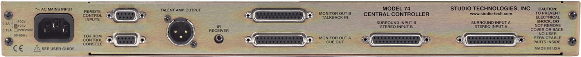 - AC Mains: 3-blade, IEC 320 C14-compatible (mates with IEC 320 C13)