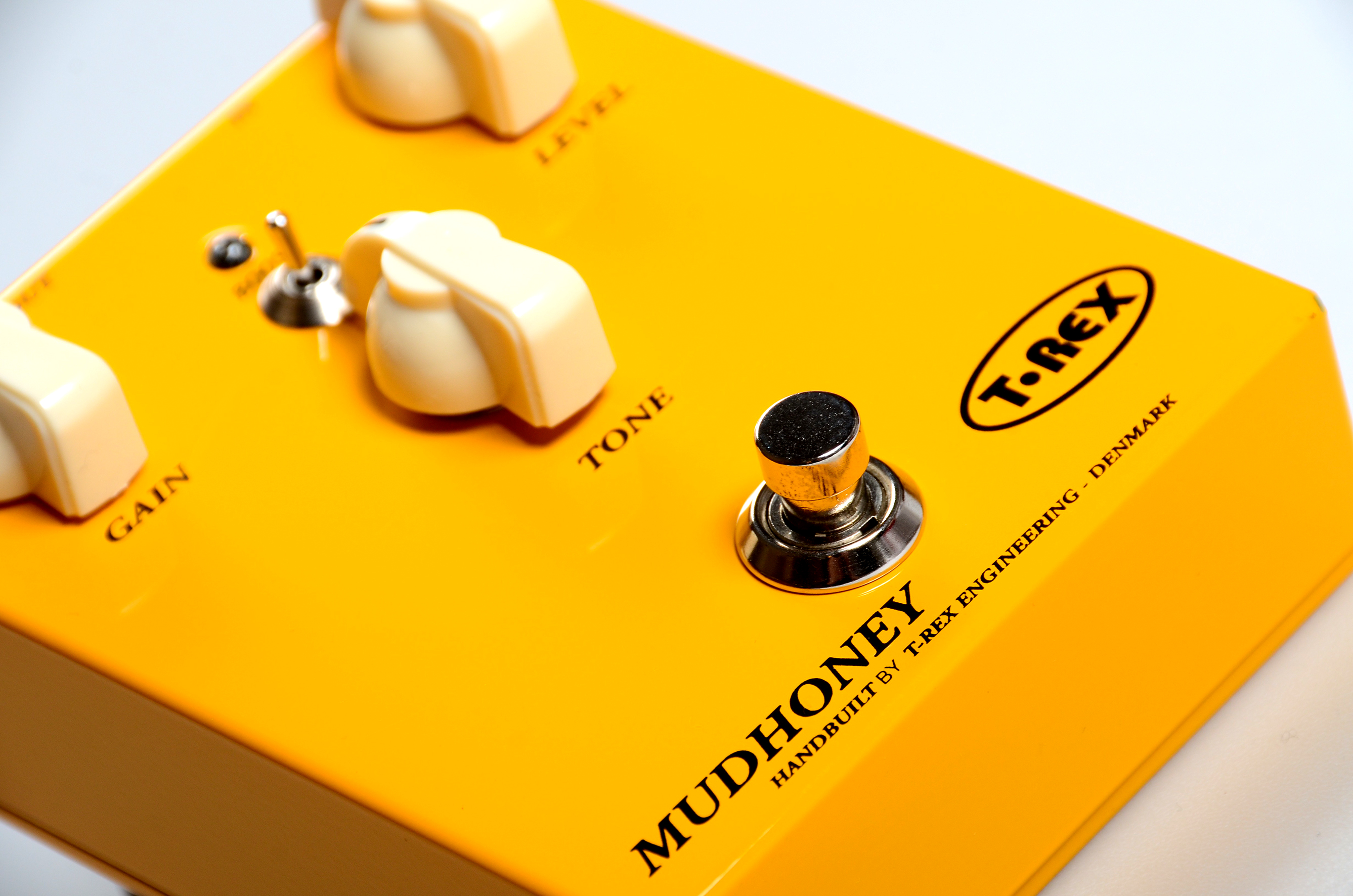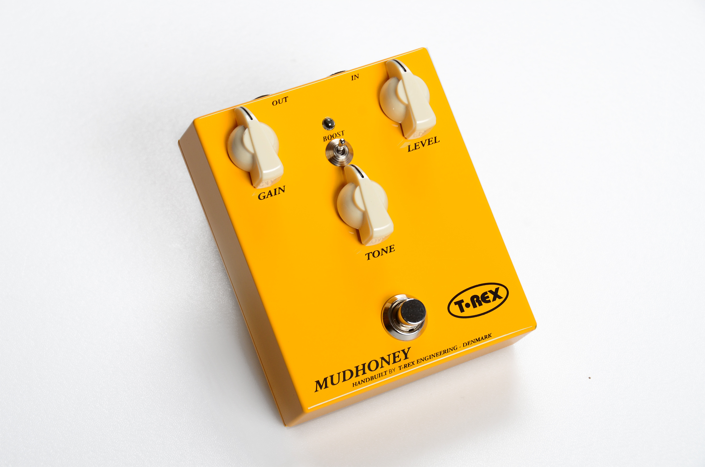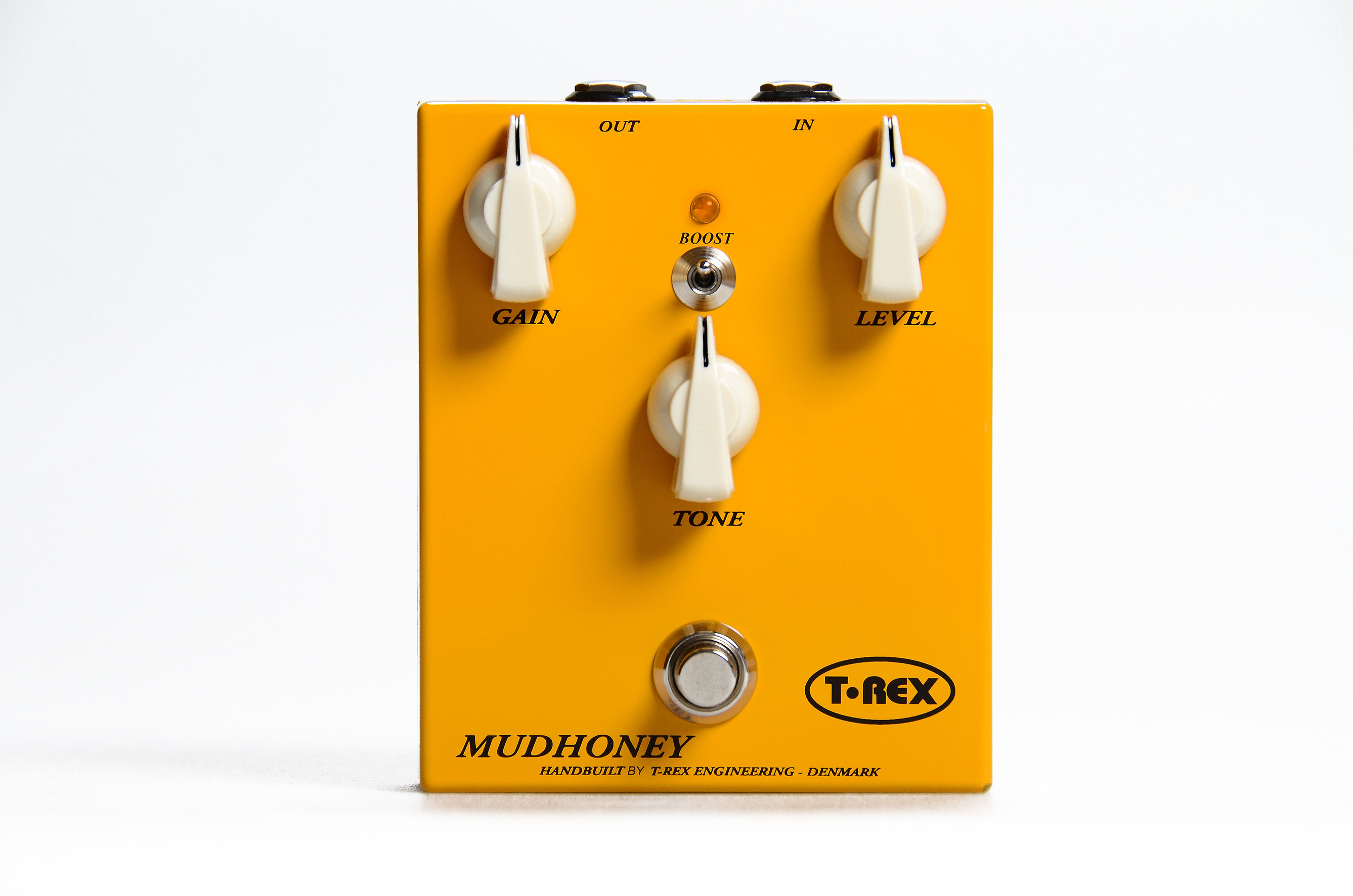T-REXにとって、MUDHONEYはオールラウンドなディストーションボックスを作るための最初の挑戦でした。そうして作られたMUDHONEYは多くの異なる音楽スタイルのマッチし、多くのプレーヤーに他のペダルでは表現できないサウンドと評価されています。アグレッシブでパンチのあるミッドレンジとBOOSTスイッチの組み合わせは、ナチュラルロックのテイストを提供しながらもハイゲイン設定ではファズのようなサウンドを楽しむことができます。逆にローゲインにすれば、より野性的なリズムサウンドが得られます。