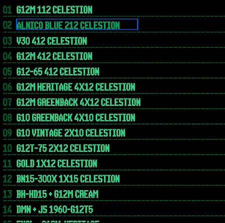 工場出荷時に12種類のCelestion公式デジタルIRファイルが搭載されています。
