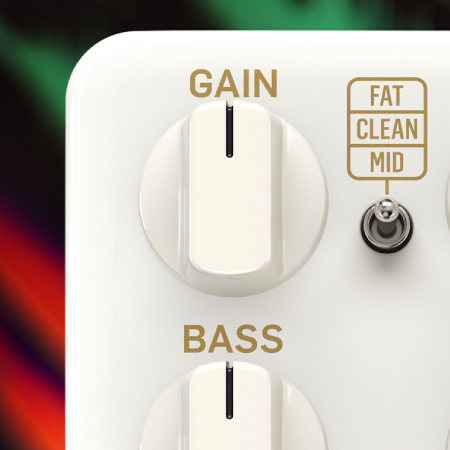 GAINノブをあげるほど、ブーストに歪みが追加され、クリーンブーストでは得ることのできないジューシーなーブーストが可能になります。