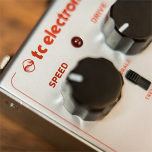 DRIVEノブを上げるほど、真空管アンプのような甘くオーガニックなサステインを得ることができ、SPEEDノブを上げるほど、スピーカーの回転数が増え、豊かなモジュレーションを得ることができます。